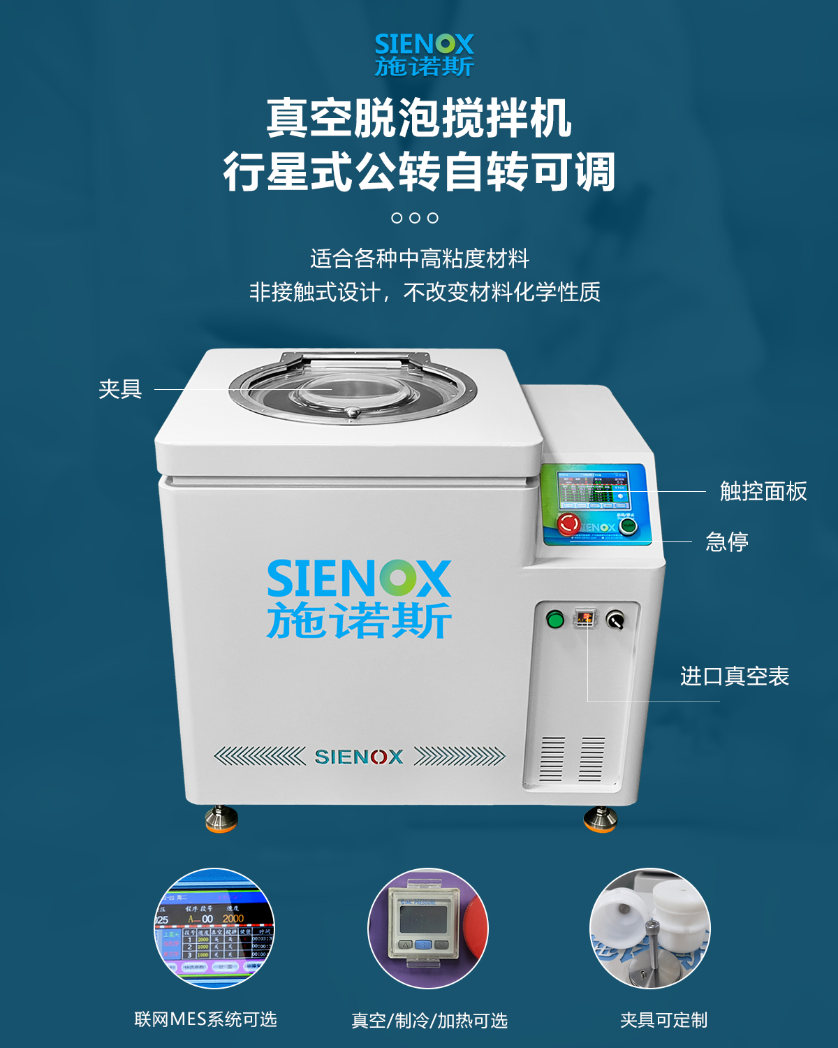 By using the centrifugal force of revolution and the shear force of rotation to stir, coupled with a vacuum pump to extract gas, small bubbles in the liquid can be efficiently removed, improving product quality.